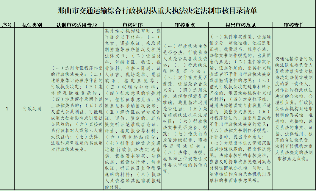 那曲市交通运输综合行政执法队重大执法决定法制审核目录清单